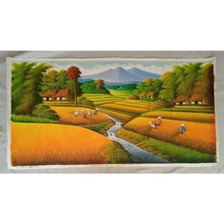 Jual lukisan pemandangan sawah terasering panen padi yang sangat indah.
